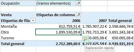 No olvidar que en cualquier caso, podemos acceder a estos filtros de tabla dinámica y filtros de cabecera de fila y columnas y volverlos a activar / desactivar, la Exploración rápida trata de accesos directos; pero siempre está en nuestras manos configurarlo.