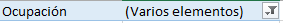 Una de las áreas de campos de tabla dinámica es el área filtros. Digamos que agregamos un filtro de tabla dinámica por la columna Ocupación de la tabla Clientes