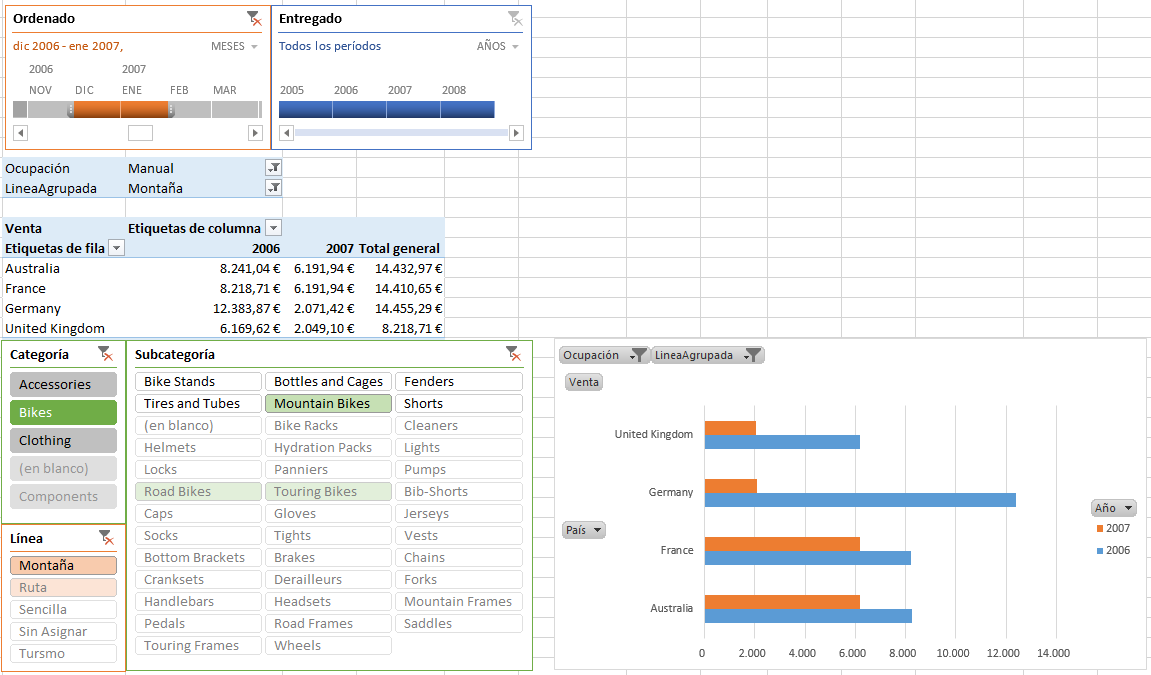 De esta forma, muy breve, lo sé, terminamos el recorrido por las tablas y gráficos dinámicos, su configuración y opciones principales de filtrado, queda mucho por ver, mucho en lo que profundizar; pero lo dejamos y pasamos a dedicarle la próxima entrada a la visualización con Power View, de modelos creados con Power Pivot.