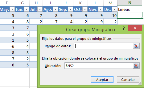 Necesitamos definir dos valores, el rango de datos que va a cubrir el minigráfico y la ubicación del mismo.
