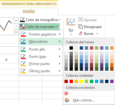 Como vemos, al crearse un minigráfico tenemos a nuestra disposición una nueva ficha Herramientas para minigráficos. Esta ficha cuenta con un grupo de opciones de configuración.
