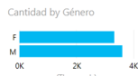 Un gráfico sencillo puede mostrar, por ejemplo, el valor de la cantidad agregado según el Género del cliente, con un gráfico de barras o de columnas. Los valores van a la propiedad Valores y el elemento descriptivo, que se encarga de segmentar el valor va a la propiedad Eje.