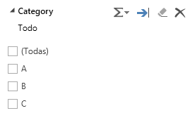 Por ejemplo, es posible crear un filtro para el campo Categoría, que es de tipo discreto