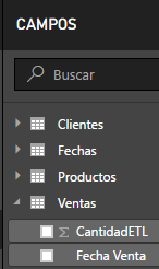 Para este ejercicio vamos a visualizar nuevamente la columna CantidadETL de la tabla Venta (sólo para la demostración, al final, quedará nuevamente oculta)
