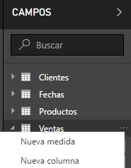 Para crear una medida con DAX tenemos varias opciones, las dos más comunes son: