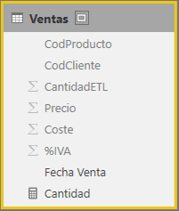 Vayamos a nuestro ejemplo. En la tabla Ventas, tenemos las columnas Cantidad, Precio y Coste, a partir de las cuales queremos obtener el Importe Ventas, Beneficio y el % de Beneficio.